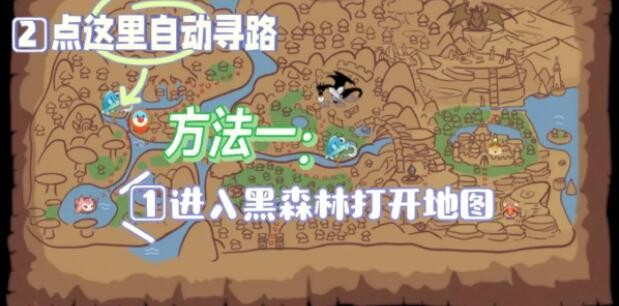 1。进入黑森林,打开地图。点击左边的钓鱼点自动找路