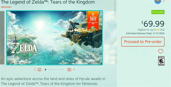 《塞尔达传说:王国之泪》港服eshop售价499港元(目前约合人民币437元),支持任意亏券购买。