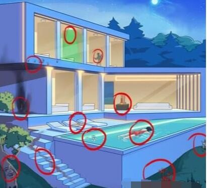 一代沙雕怪府是怎么过的?诡异的豪宅需要以最低的价格出售,也就是玩家需要用放大镜仔细观察每一个角落,找出不好的地方。你可以找到椅子上的报纸,树上的图案,楼梯上的血渍,游泳池里的尸体和硬币,牌位,鲜花,地上伸出的手,墙上的黑,灯泡,影子和指纹。