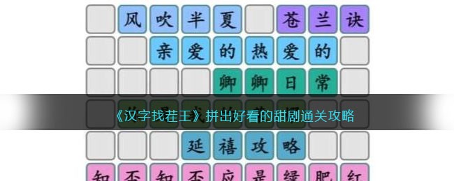汉字“摘牌王”是一种文字游戏。你是怎么熬过最新关卡拼出一部好看的甜剧的?这一关是拼图游戏。把单词移到合适的位置,拼出完整的剧名就可以过关了。以下是3DM边肖带来的《汉字找茬王》拼出好看的甜剧通关攻略。有兴趣的朋友一起来看看吧。希望对大家有帮助。