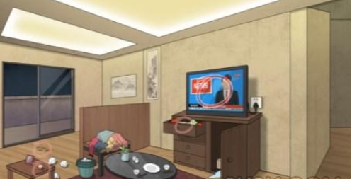 2。找到客厅奇怪的地方:没有关联的电视,被弄乱的抽屉,脚印,被切成两半的苹果。