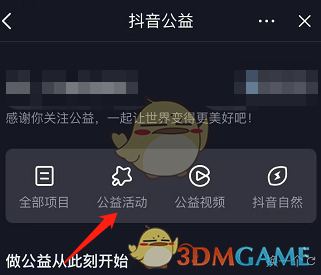 3。然后,在Tik Tok公益界面,点选公益活动。