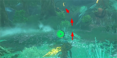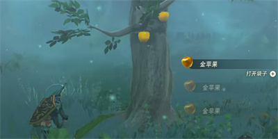 6、再次遇到沼泽后,沿着沼泽上的木桩和石台向前走,就可以看到后方的金苹果树。
