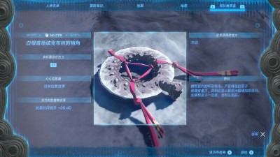侧面尖锐的环形角和紧紧缠绕的带子蕴藏着魔力,武器上会有大量的攻击力加成。若与虫同煮,也可入药。