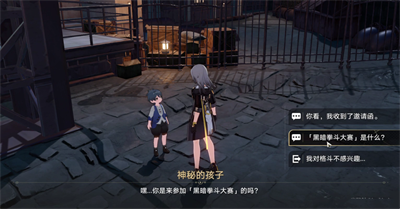 2、左转在一个木箱前找到闪点互动,如果没有,你已经调查过了,看看你的背包里有没有「黑暗拳斗大赛」邀请函。