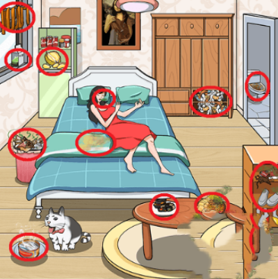 玩家总共需要找到:鱼罐头、臭垃圾、过期牛奶、榴莲、臭屁、臭豆腐、厕所堵塞、臭老鼠、口臭、臭袜子、螺蛳粉、九转大肠等物品。