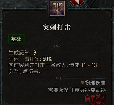 1.第一棵技能树推荐突刺打击,学一点就可以了,我们会用它来获得怒气,但建议玩家学习它下面的强化天赋。