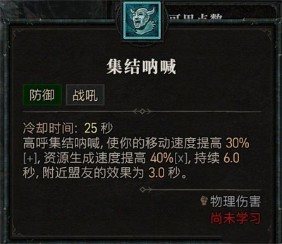 3、第三个技能和第四个技能直接学集结呐喊和战吼就可以了。这两个技能可以主动为我们提供战吼效果。