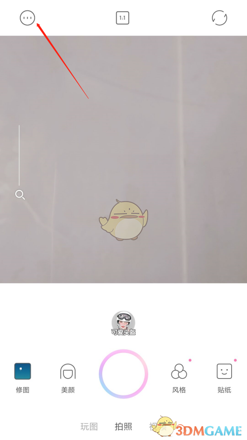 1。打开一个甜甜的相机APP,点击左上角的三个点。