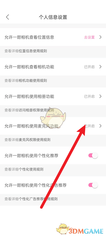 5。找到让甜甜相机使用麦克风并关闭麦克风的功能。