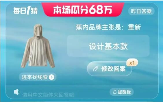 淘宝每日一猜焦内品牌主张是重新?这是2023年6月14日天猫618的每日测试题。点击左页寻找线索寻找答案。6月14日淘宝的日常竞猜题属于比较简单的级别,答案在显眼的位置。果断填写“基础设计”就好,等着奖励。另外,记得领取每日红包,搜索“90”即可领取。20号之前每天都有。