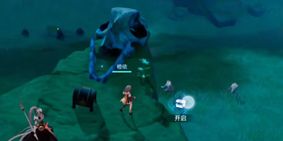 来到鲁米村郊外,在龙骨的平台上就可以看到球上的宝箱。