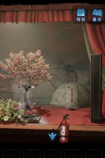 2、输入密码“7153”打开消防栓,获取灭火器,扑灭舞台上的火。