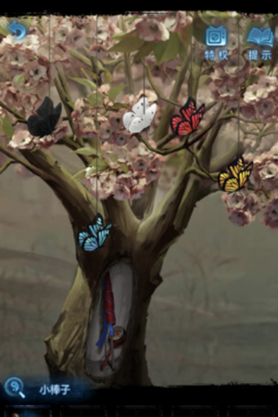 3.在草丛中寻找纸伞,然后点击花丛中的蝴蝶得到玉蝴蝶,并将其放置在石碑上。