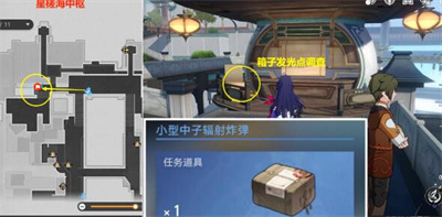 1、先去星察海中心找到发光盒获得小型中子辐射弹。