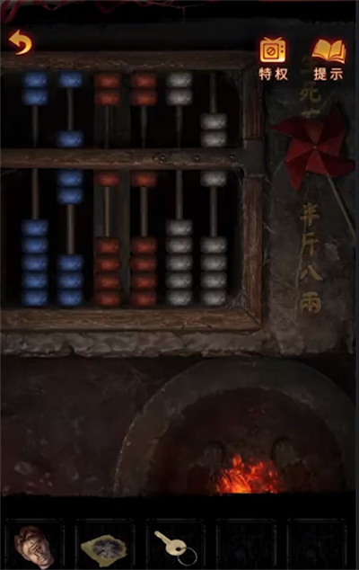 3.用屋外的算盘组成下图,获得红色风车,然后滑动浏览右边墙上的报纸即可获得线索。