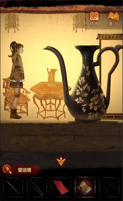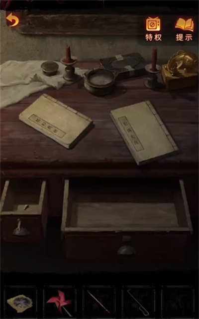 5.拿起小桌子上的画笔,突然你会伸手去抢画笔,然后拿起墙洞里的屋顶装饰,然后完成小游戏(可跳过)得到刀币,打开抽屉左边得到硬币种子,然后就会有剧情。