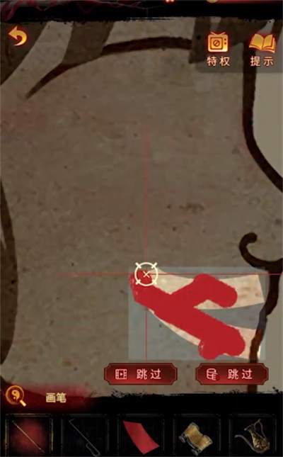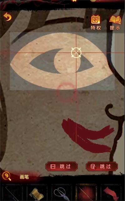 15.来到左侧海报处完成小游戏(可以跳过广告),需要用红色油漆笔画出嘴巴。