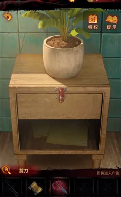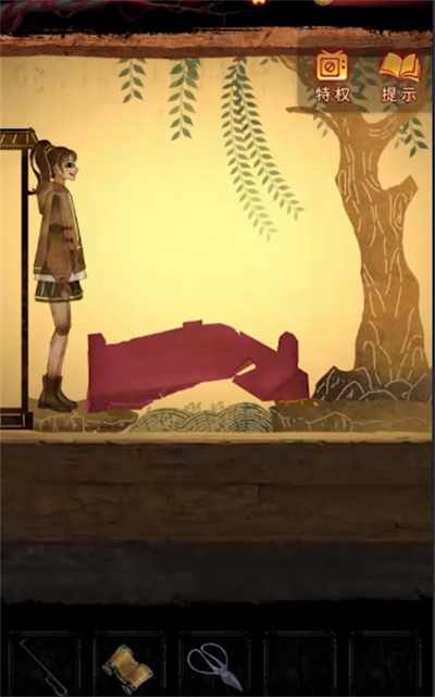 22.看完剧情,点击窗边的小柜子,用剪刀剪断绳子,得到第一张图卡。