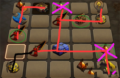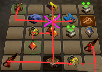 2.建议探索剧情:建议一开始被炸弹消灭的怪物位于对角位置,红色虚线为打怪路线。闲暇时间可以用来打败怪物。