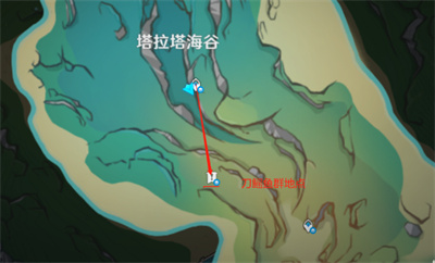 1.首先来到塔拉塔海谷附近的传送点,然后向南到达如图所示的位置。