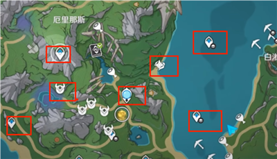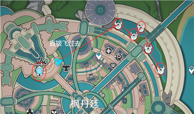 飞到枫丹右上角,图中标点有8个九羽莲。