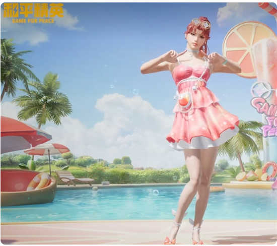 一款以清凉一夏为主题打造的新皮肤,也是清凉一夏系列皮肤之一。其女主角身穿粉色裙子,头顶戴着菱形圆镜,一头鲜红的头发与这套服装相配,喝一口清爽的“光子鸡”汽水,特效十足身边的泡泡和人物的姿势,真是洒脱又辣又可爱的御姐。