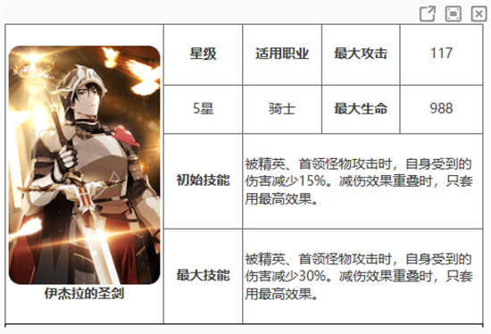 第七史诗中的圣剑神器有什么作用? Epic 7是一款集流行卡牌、策略、二次元、美少女、角色扮演等元素于一体的卡牌策略游戏。游戏画面的创作非常精美,目前非常受欢迎。游戏剧情非常丰富,融合了神故事的诸多系统。玩家在这里不断收集和培养角色,利用各种策略组合搭配成各种阵容,对抗敌人的挑战。游戏中的元素非常多样,神器是独立于装备的特殊装备。每个英雄都可以携带一件神器,伊杰拉的圣剑神器非常强大。下面小编就专门为大家详细介绍一下。
