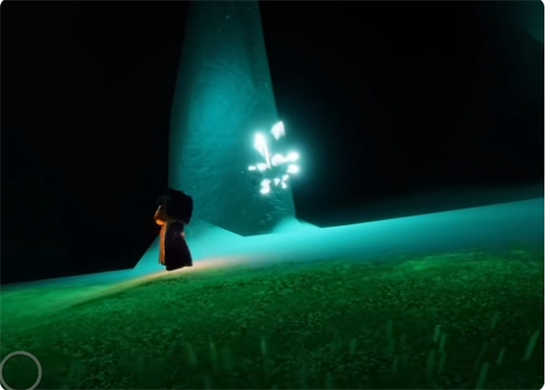 5、最后回到原来的洞口,反方向出洞,来到如图所示的位置。草坪下面藏着一种“发光矿石”。