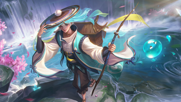 姜子牙召唤出一个以自己为圆心向外扩散的环形水波纹,跟着自己走。在释放过程中,他获得50%加速效果和持续衰减,以及2秒可抗300伤害的护盾;当涟漪扩散时,会击退周围小范围内的敌方单位;扩散结束时,会对涟漪场中所有敌方目标产生钓鱼效果;如果击中敌人,将获得400盾(+65.0%普通攻击加成)。每击中一个敌人,护盾值会增加25%,最高50%。