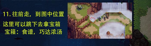 3。最后我们跳下来,沿着台阶一直往前走,打开下面的宝箱就可以拿到配方了。