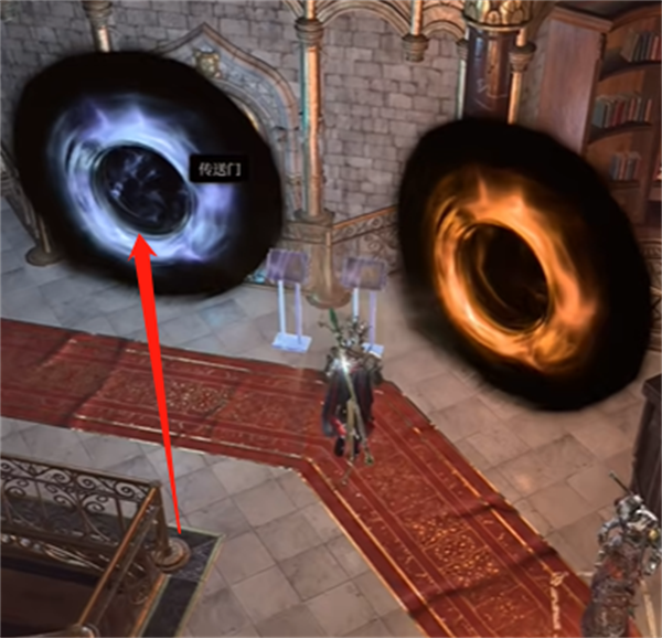 3。选择一个传送门,然后去最左边和法师对话。接下来,从门户往下跳,找到如图所示的按钮。