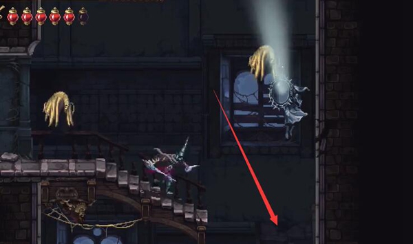 4。接下来,我们跳到对面的楼梯上,然后墙就会打开。
