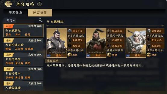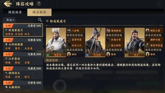 优点:经典的前排阵容,生存能力超高,输出不低。