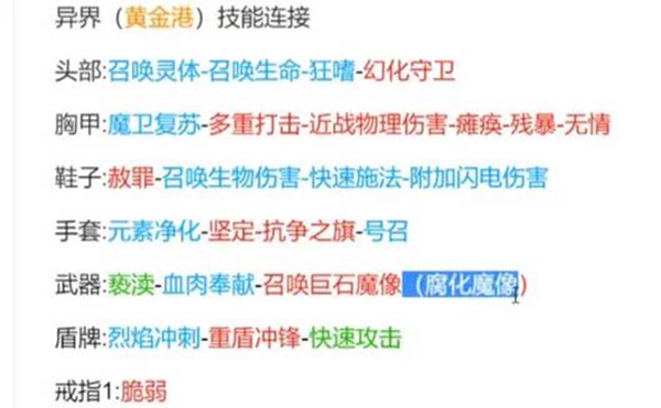 鞋子:脆弱-诅咒光环-元素净化-召唤