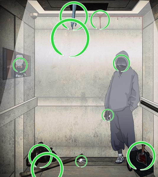 1。可以看到电梯楼层在-18层,按钮上有红色的血迹。