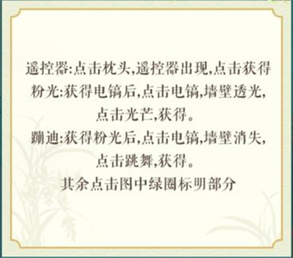 不和谐的地方有:遥控器、粉色灯、蹦迪、电动鹤嘴锄、拖鞋、卫生纸、电视机、圆珠笔、挂钩、手表。