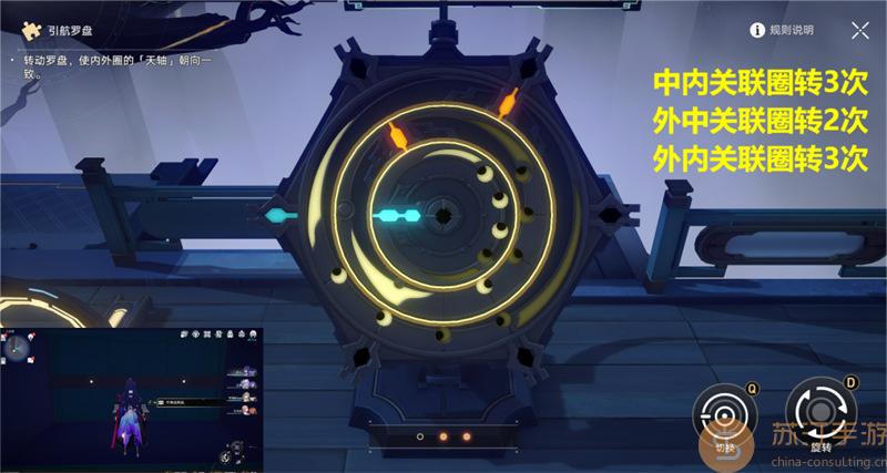 1、将中、内相关圈转3次,将外、中相关圈转2次,将外、内相关圈转3次。