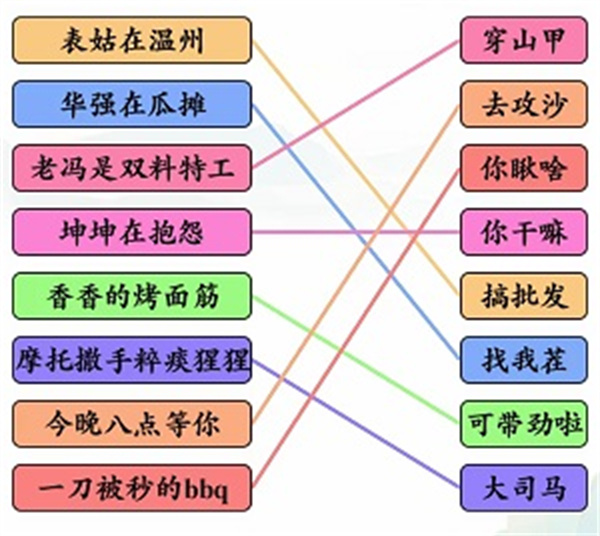 这是一个非常容易的连接字符的通行证。玩家只需要连接相应的单词就可以通关了。相信还有很多玩家不知道怎么过这一关。下面小编给大家带来文字玩出花热梗连线攻略。