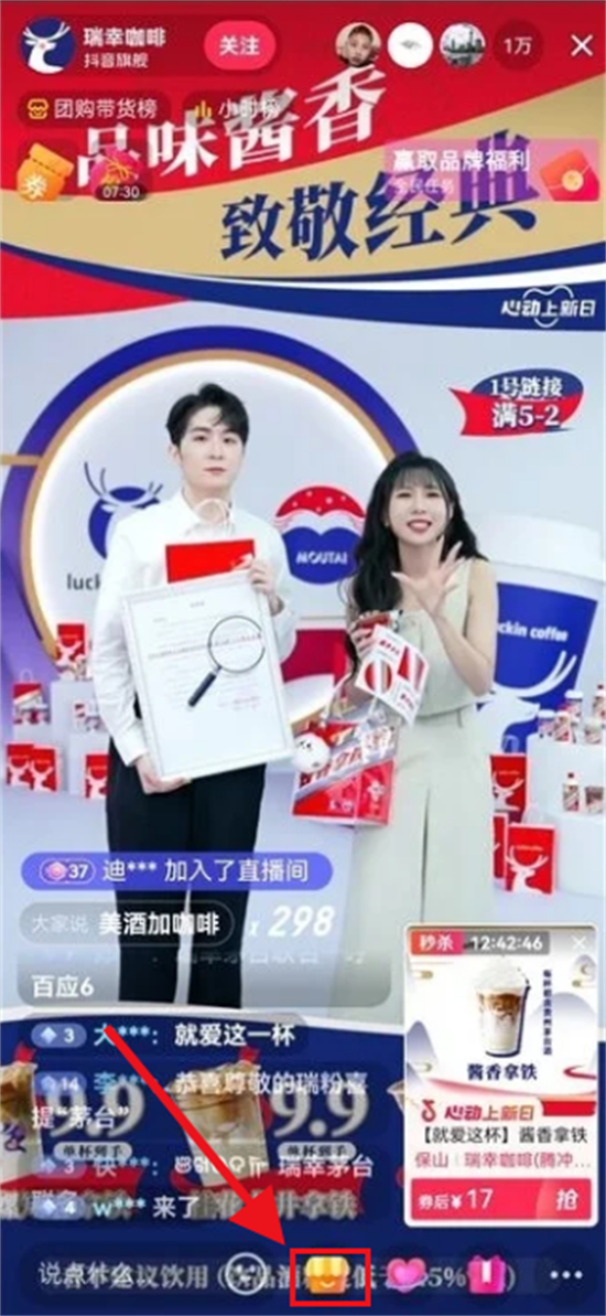 关注瑞幸咖啡官方抖音,进入直播抢优惠券。
