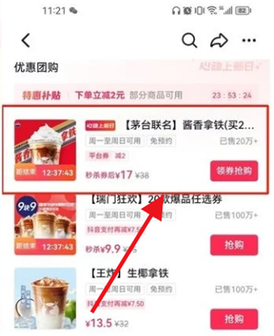 如何在抖音上购买瑞幸拿铁优惠券?