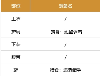 替换装备:头部、肩膀和鞋子都选择猎物,以获得5 个猎物补丁。
