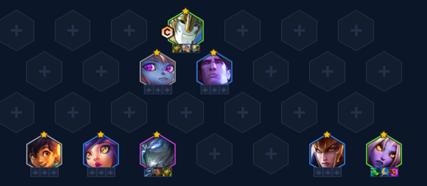 最终位置:这个阵容需要加里奥德在前排,后面的要塞守卫第二次分担伤害,索拉卡在底角,等待索拉卡的伤害叠加。