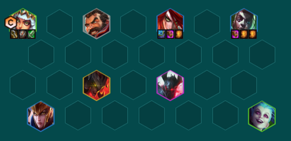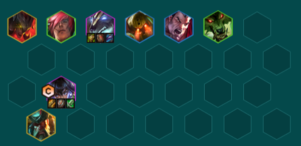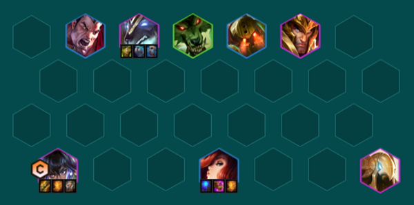羁绊:4个挑战者3个德玛西亚2个舒瑞玛2个主宰2个统治战士