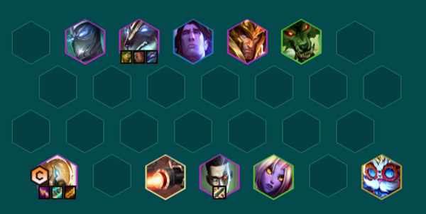 先找到前排的狂徒甲和后排的纳什之牙。如果这套只开了2个舒瑞玛,前排前两个明星就配第一个。