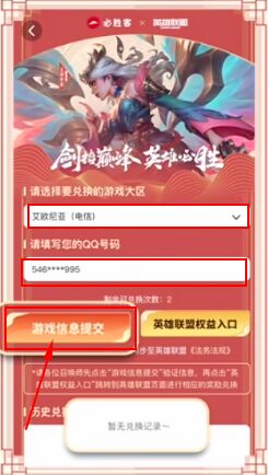 5、用户填写游戏账号和QQ号,然后点击提交游戏信息;