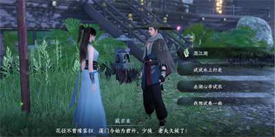 1.与镜湖附近的戴军对话,在选项中选择浑江湖。