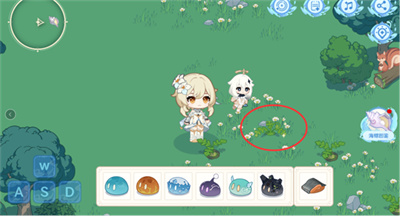 在河的右侧,使用冰属性史莱姆获得海螺。