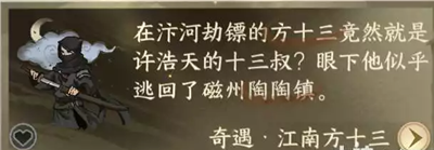1、首先选择“方十三是谁?”剧情中选择江南方腊的传闻中的世界启动任务。