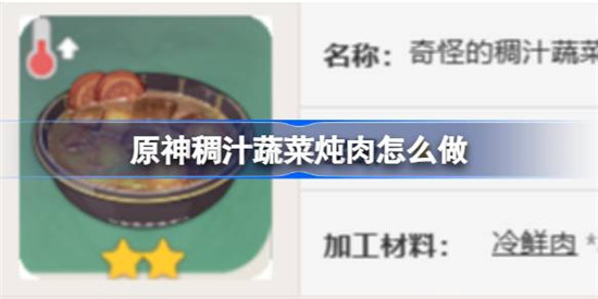 原神浓汤炖菜怎么做? 原神浓汤蔬菜炖菜。这种美食可以降低所有角色在战斗中冰冷值的积累速度,给玩家带来很大的帮助。它是游戏中龙的脊椎。雪山的环境非常恶劣。龙脊雪山的玩家将会受到严寒的侵袭。随着角色冰冷值的积累,角色会不断损失生命值。玩家需要找到火源或者吃掉相应的食物。解决方案,游戏拥有庞大的地图设计,不同的地图会有全新的玩法,给玩家带来了很多游戏乐趣。在游戏中,玩家可以探索许多地图并收集各种材料。游戏里怎么做浓浓的蔬菜炖菜?很多玩家不知道浓汤炖菜怎么做。这里小编有详细介绍如何制作浓汁炖菜。不知道怎么做浓汤炖菜的朋友可以来这里看看。